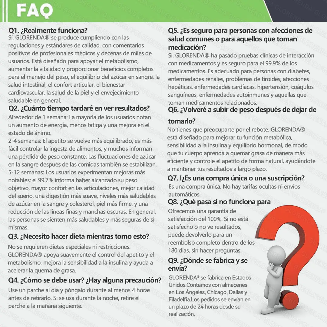 ๐๐๐๐น๐ฌ๐ต๐ซ๐ยฎ๐ด๐๐๐๐๐๐ฎ ยท ๐๐ฒ๐ฟ๐ฏ๐ฒ๐ฟ๐๐ฃ๐ ร ๐๐ผ๐+ + ๐๐-๐ข๐ง-๐ ๐๐ฑ๐๐ฎ๐ป๐ฐ๐๐ ๐๐๐ฃ๐ค ๐๐๐๐ง๐ค๐ฃ๐๐๐๐ฅ๐ ๐๐๐ญ๐๐ ย Este producto se desarrollรณ a lo largo de mรกs de 20 aรฑos de investigaciรณn por un equipo multidisciplinario de mรกs de 30 expertos. Cada parche incorpora una arquitectura de microagujas ultrafinas que miden aproximadamente una sรฉptima parte del grosor de un cabello humano, diseรฑada para garantizar una aplicaciรณn suave y prรกcticamente indolora. Su fรณrmula contiene compuestos bioactivos naturales altamente concentrados, hasta 20 veces mรกs que los niveles convencionales del mercado, incluyendo Moringa y Berberina, que actรบan sinรฉrgicamente para favorecer respuestas glucรฉmicas saludables, la regulaciรณn del apetito y el metabolismo de los lรญpidos, promoviendo asรญ un control de peso gradual y sostenible. Enriquecido con NAD+, el parche tambiรฉn contribuye a la firmeza y la elasticidad de la piel durante las fluctuaciones de peso, ayudando a mantener una apariencia esbelta sin comprometer la comodidad ni la estรฉtica. Otros componentes de alta eficacia contribuyen a la funciรณn inmunolรณgica, la salud digestiva, el equilibrio intestinal, la salud de la mujer, los niveles de energรญa diarios y la reducciรณn de la fatiga, promoviendo en conjunto un estado fisiolรณgico mรกs joven y resistente desde el interior. Fabricado en instalaciones con certificaciรณn GMP que cumplen con los estรกndares de calidad de EE. UU. y la UE, esta soluciรณn sin agujas, respaldada por la ciencia, ofrece un enfoque seguro e integral para un control de peso eficaz y una salud metabรณlica a largo plazo, diseรฑada para trabajar en armonรญa con el cuerpo, no en su contra.
